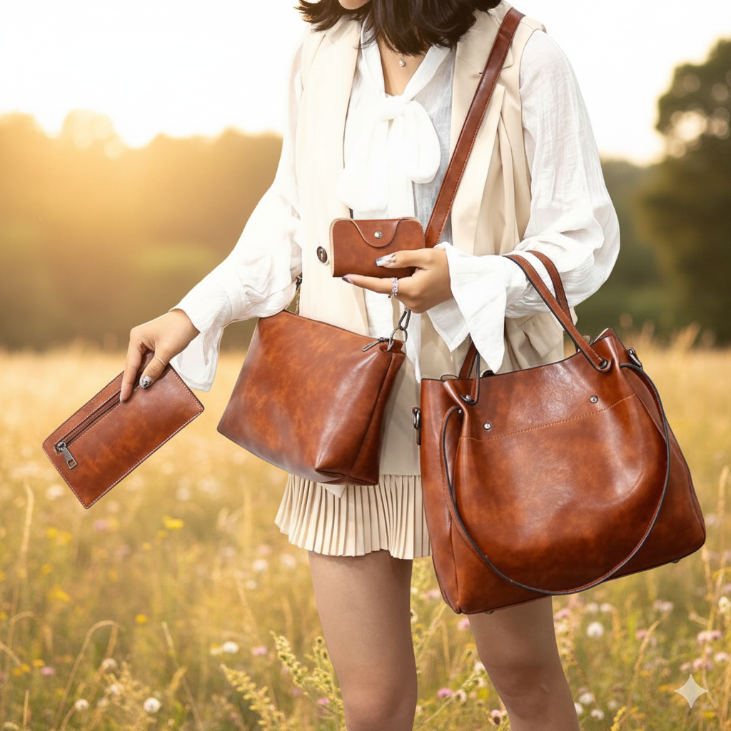 Le set de sacs vintage Artemisia est soigneusement sélectionné dans le style chaleureux et intemporel de LIYO Marseille. Ses lignes épurées, sa finition élégante et sa structure solide en font le compagnon idéal pour toutes les occasions, des journées de travail aux moments de détente. Chaque sac est conçu pour offrir de l’espace, une organisation optimale et une touche de classe qui s’harmonise naturellement avec toutes vos tenues.