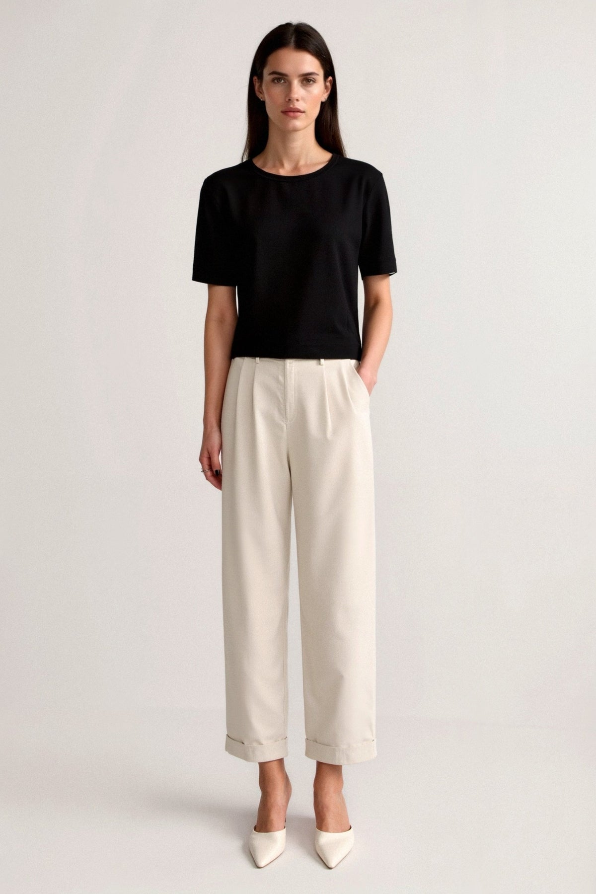 Tijdloze damesbroek met plooien en omgeslagen zoom